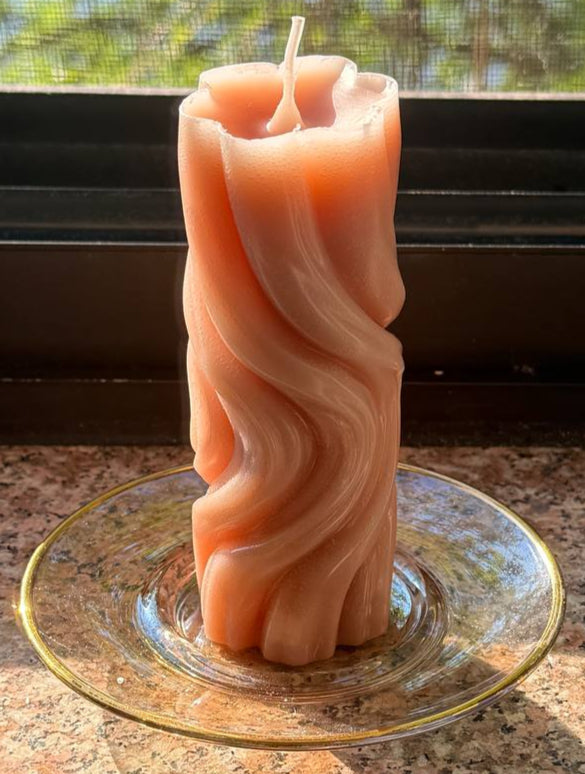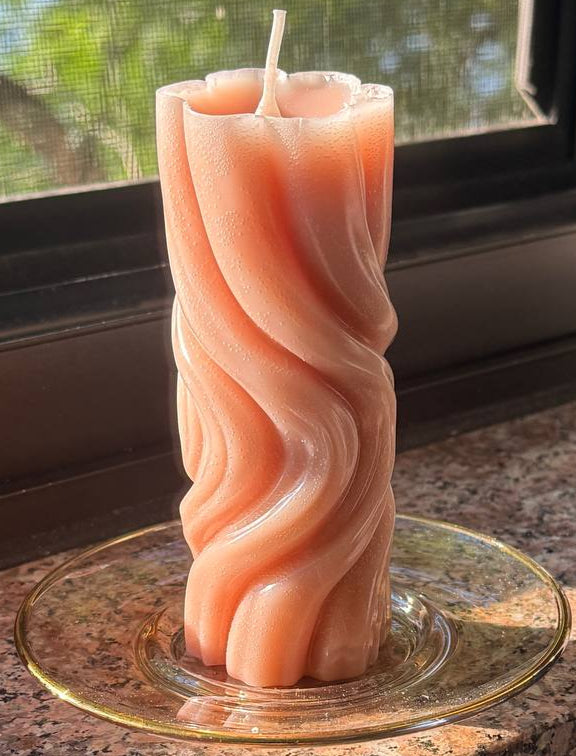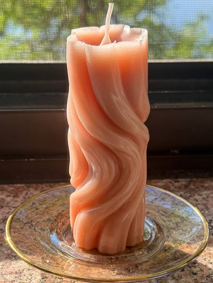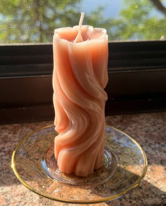 Unveil the majestic allure of the "Twisted Charm Large," a handcrafted organic beeswax candle featuring an expansive twisted design that elevates rustic elegance to new heights. Crafted in soft colors, this larger version casts a radiant, enchanting glow, perfect for gifting or transforming your decor with grandeur. Standing 5 inches tall, 2 inches wide, and 6 inches round, its bold, hand-twisted form showcases a natural beauty that commands attention.